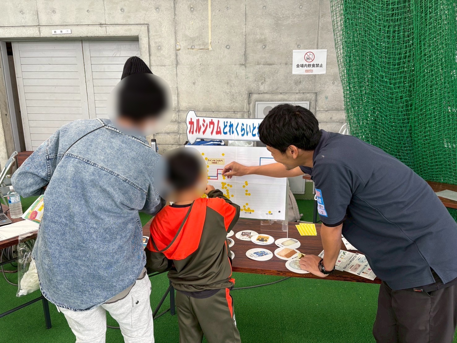 また、栄養士による予測身長やカルシウムチェックを体験した親子は、笑顔で「カルシウムを取るにはこの食品がいいんだね」と話しながら、次のブースへ向かわれていました(^^♪