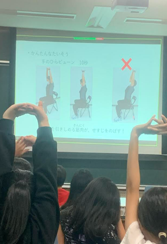 という流れで進め、途中に実技で筋肉の働きを確認し、クイズで体の仕組みを理解しながら学んで頂きました。