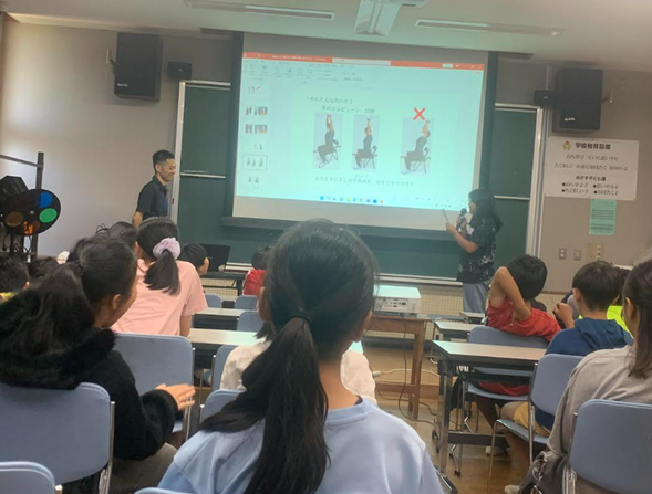「専門家からの講話を通して児童に良い姿勢を身につけさせたい」というオファーを受け、
