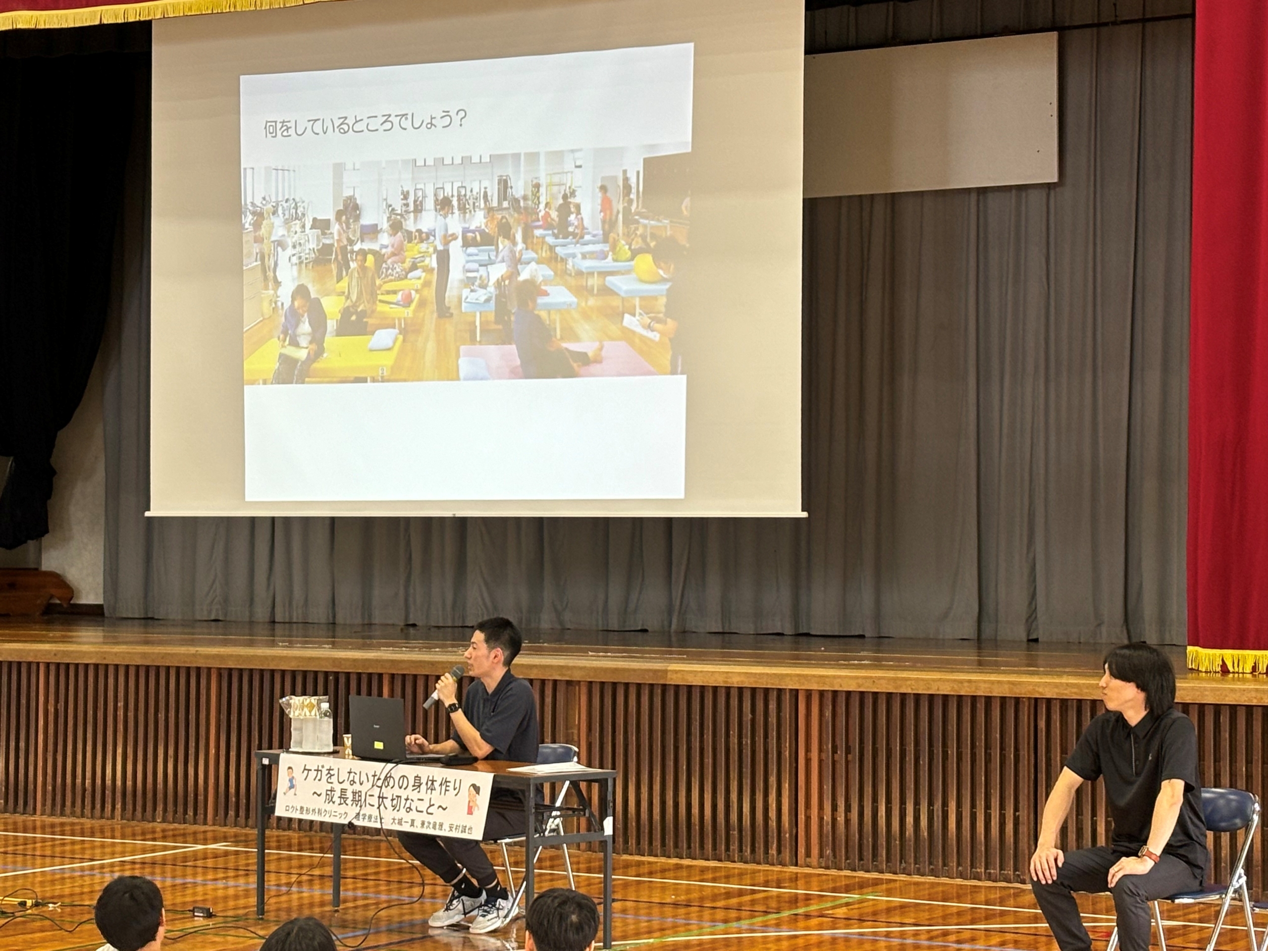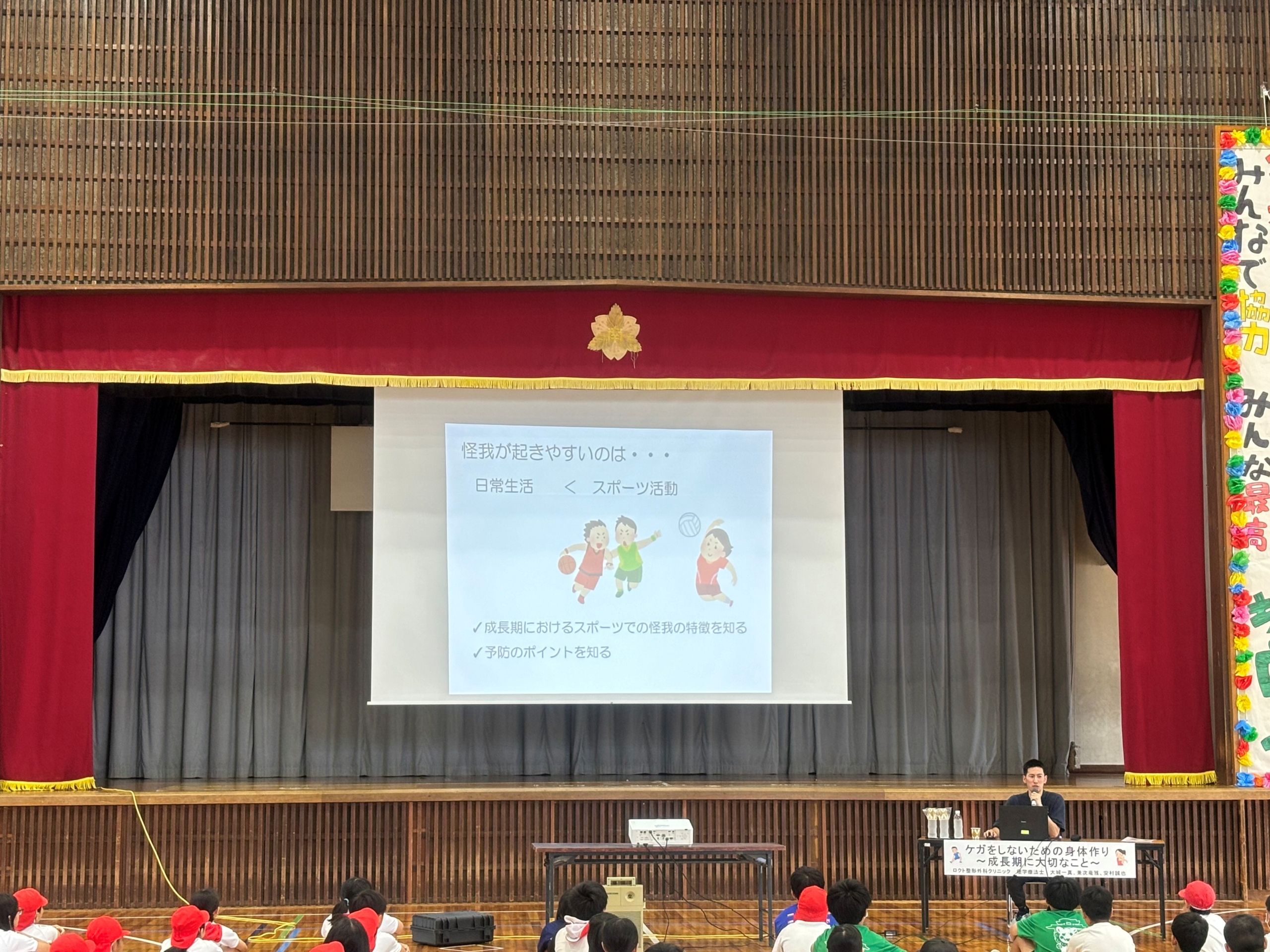 2025年10月23日、昨年に引き続き、今年も城南小学校5年生の生徒さんを対象に「怪我をしないための身体づくり」について講演会を行いました(^^♪