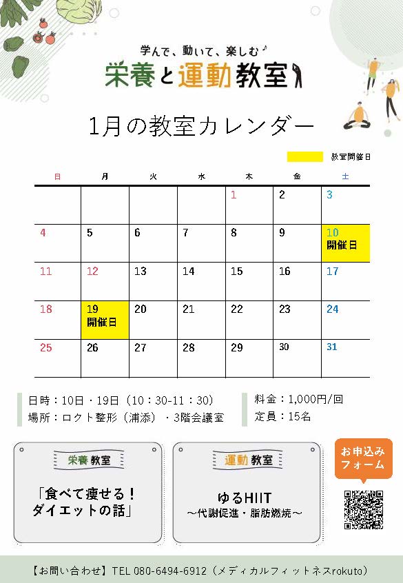 「栄養と運動教室(@牧港)」1月のカレンダー