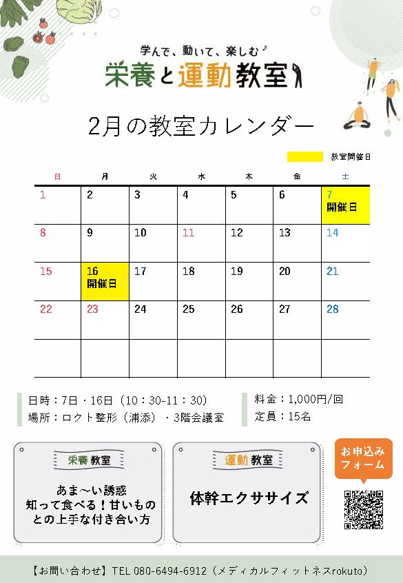 「栄養と運動教室(@牧港)」2月のカレンダー