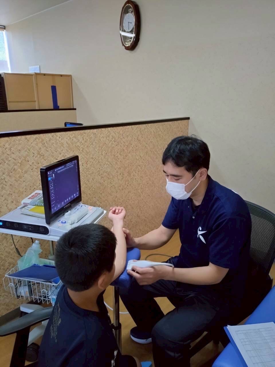●超音波(エコー)による肘の検診:自覚症状のない障害の早期発見に努めました。