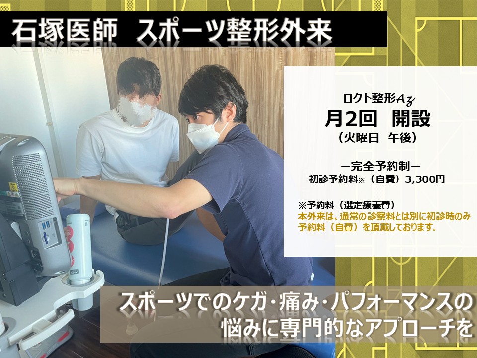 ロクト整形Az(那覇市)では月2回(第1・第3火曜日)、県外より石塚医師が来訪し、スポーツ整形外来を行っています。